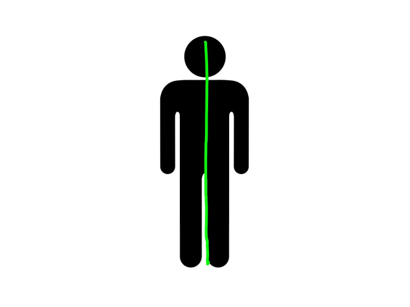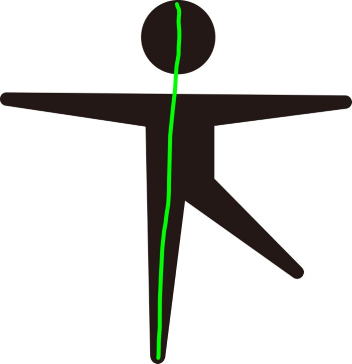 頭部から重心を通り、  両脚の間を抜けて地面へと向かうラインが、  この軸にあたります。