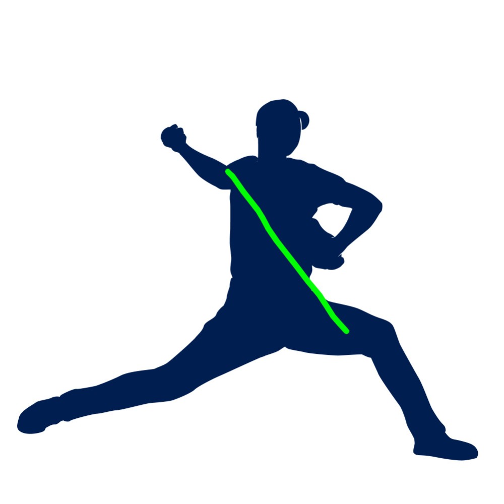 下肢で生み出した力を、体幹を通して上肢へ伝えるために必要な、斜め方向の、安定ラインとして捉えます。